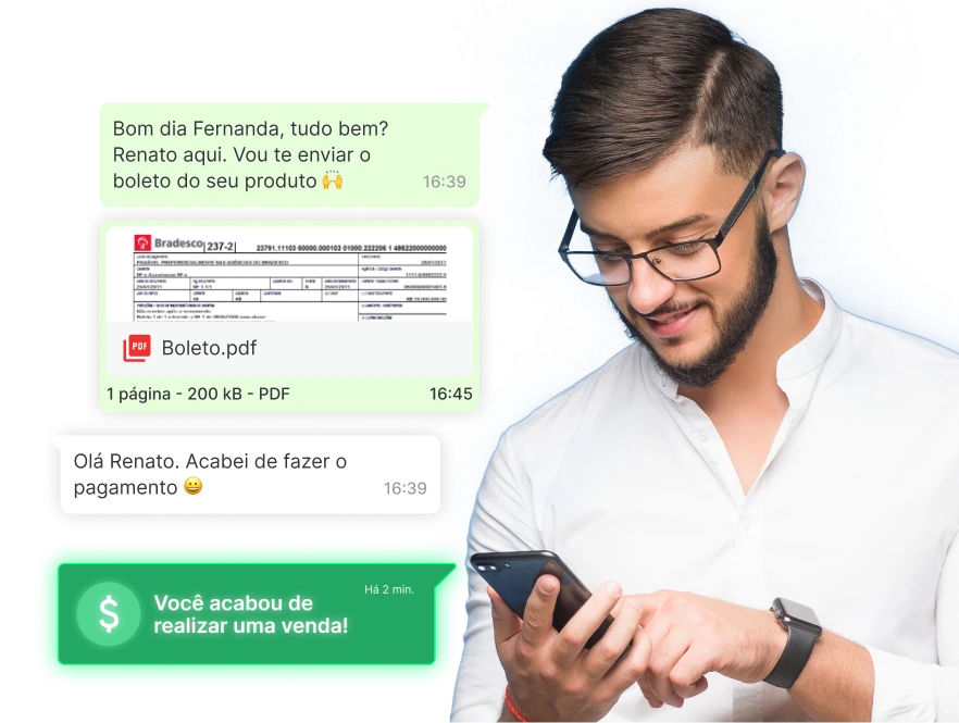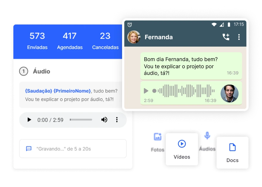 Com mais de 214 milhões de mensagens enviadas, humanizamos seu contato com o cliente. Você pode enviar textos, áudios, vídeos e muito mais, tudo em um fluxo de conversa natural e totalmente automatizado.